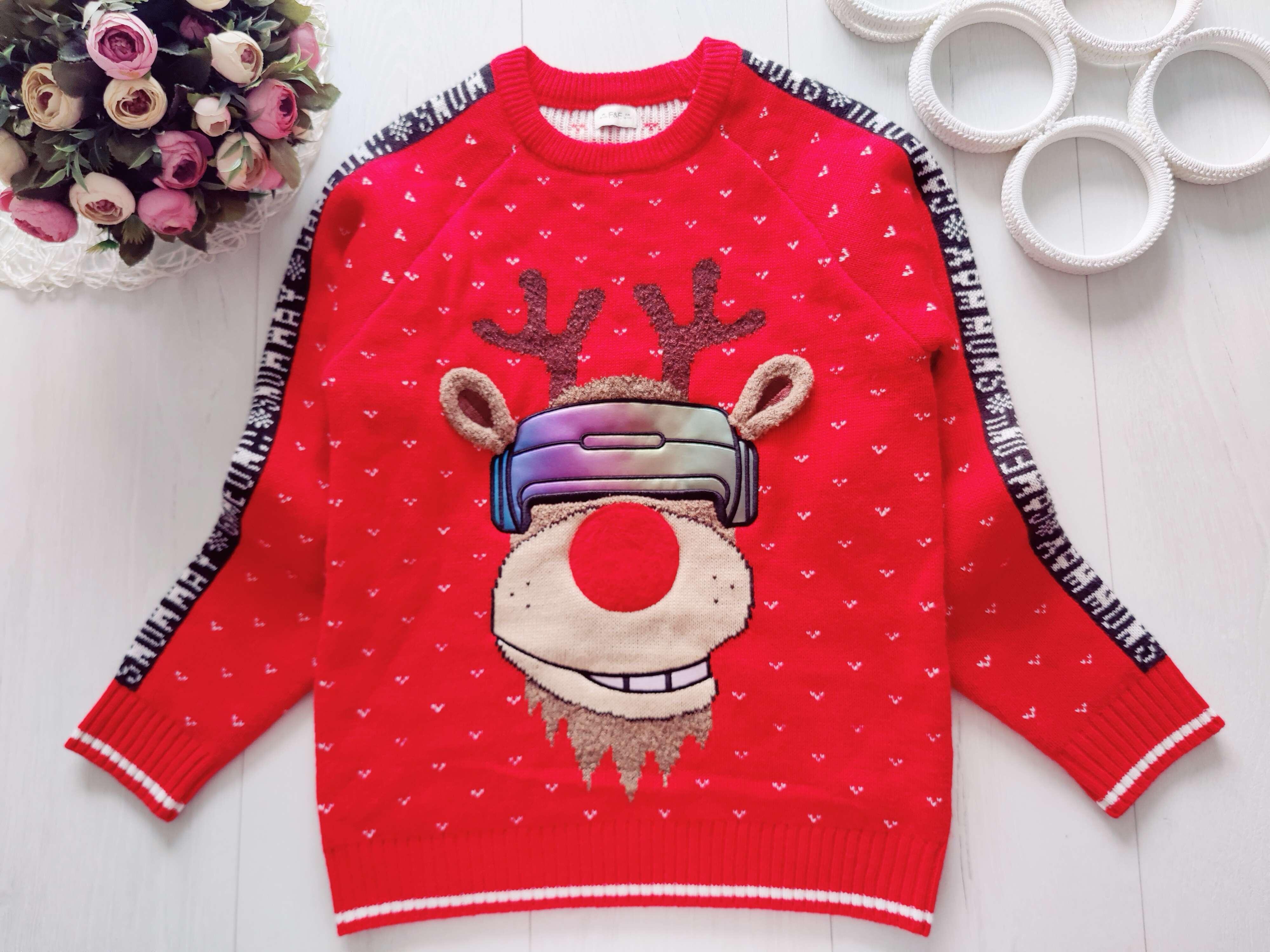 10,11 років, зріст 140,146 Червоний новорічний светр з оленем
