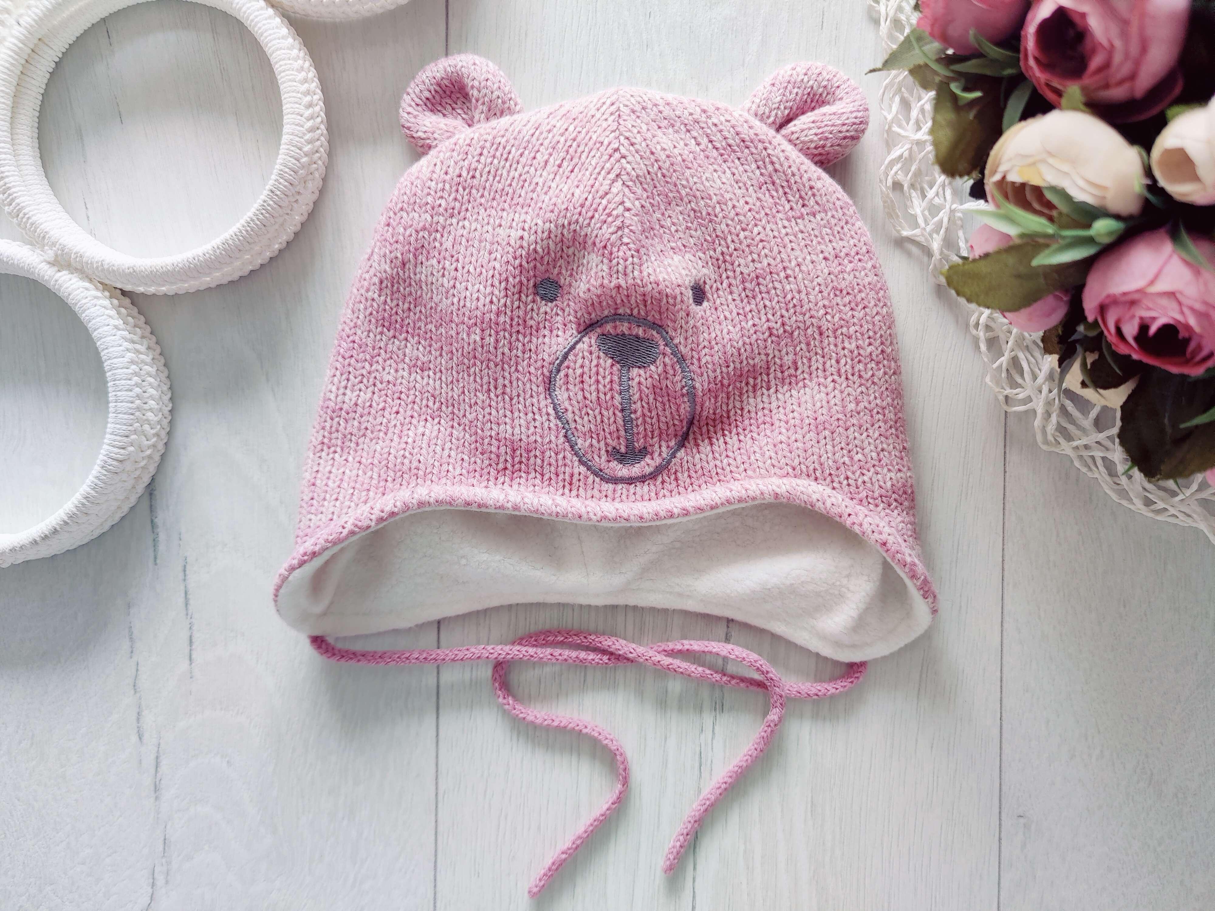 47 (9-12 міс) Тепла в'язана шапка на флісі