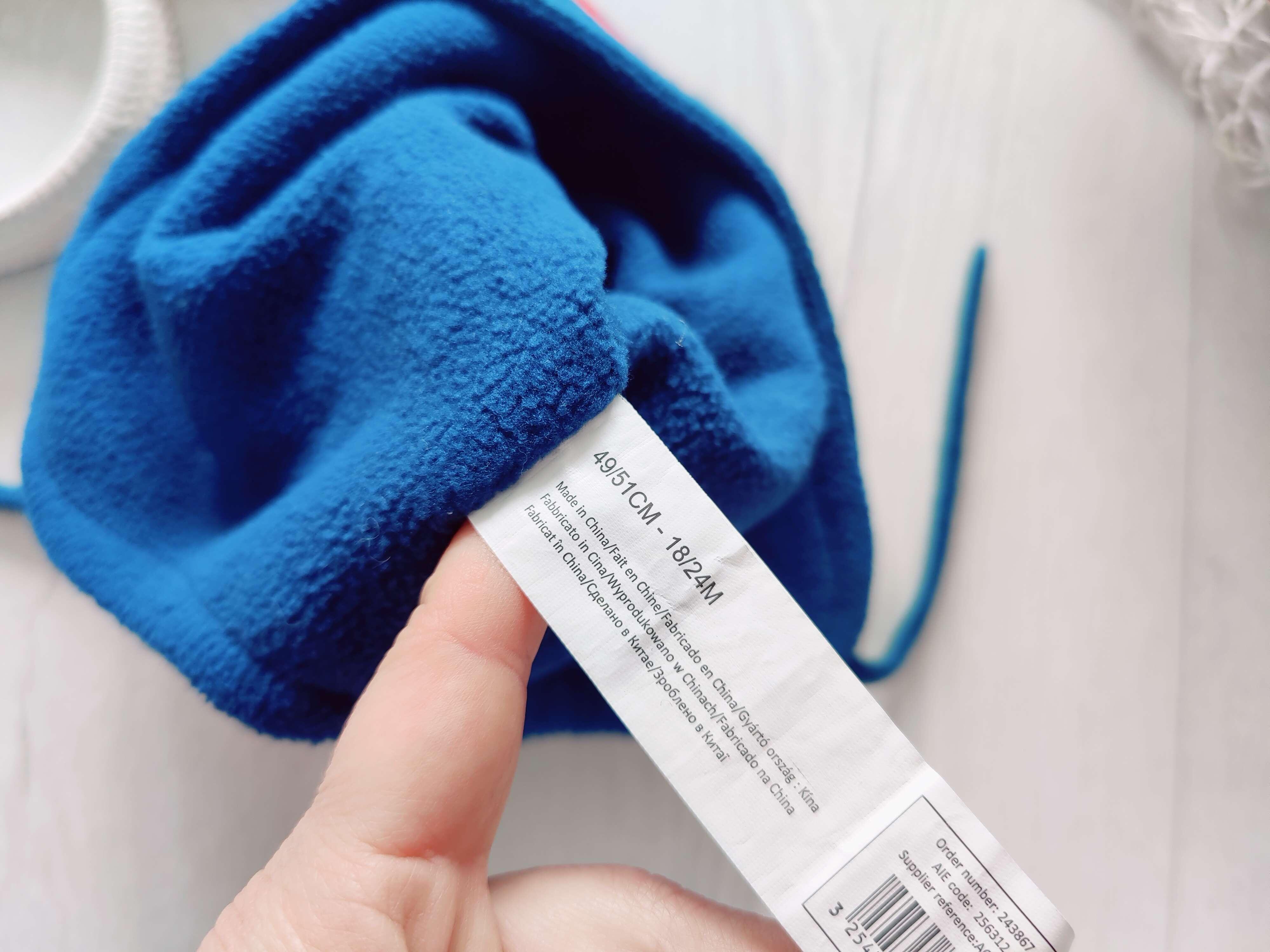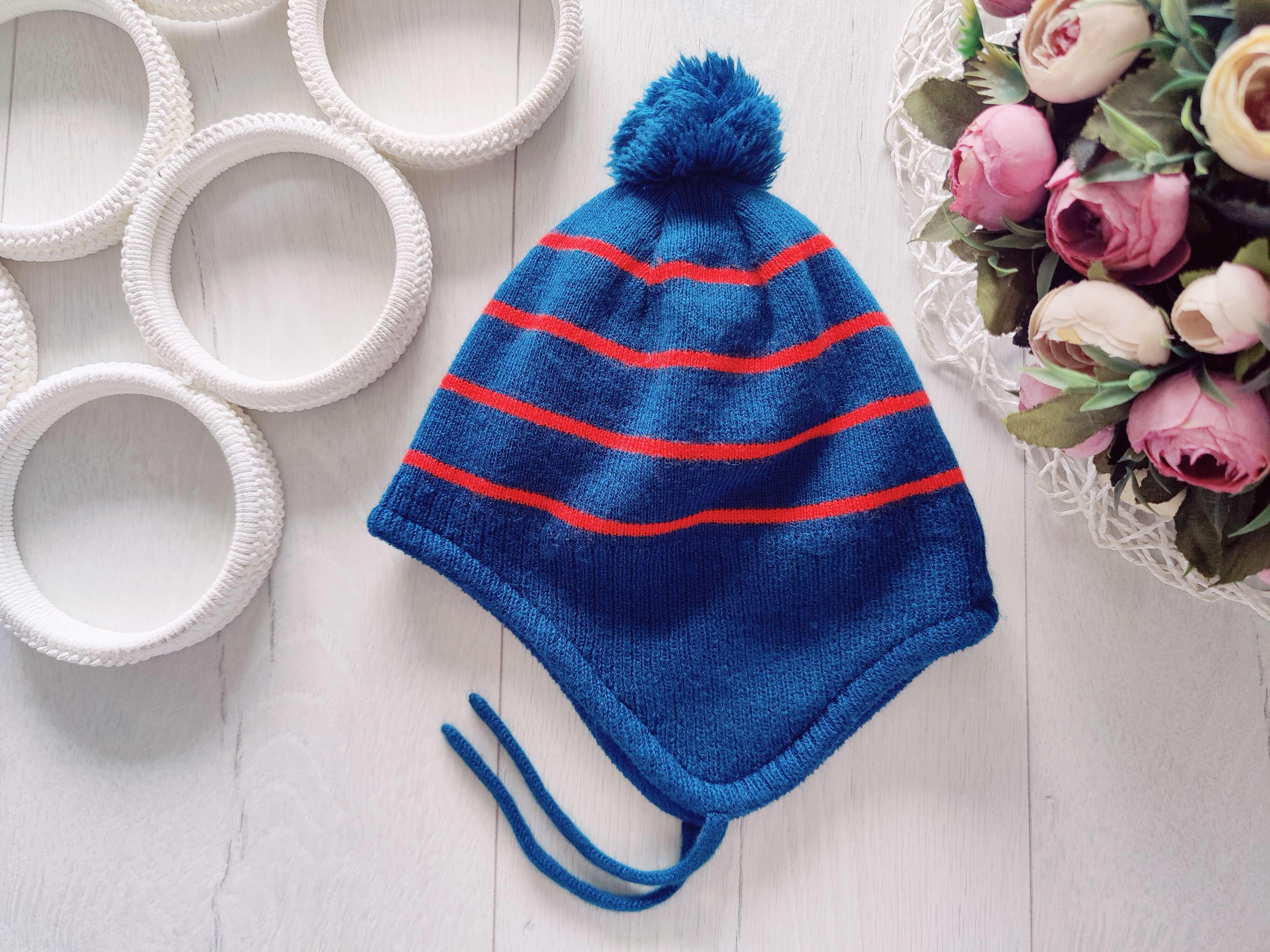 49-51 (18-24 міс) Тепла зимова шапка на флісі хлопчикові на зав'язках