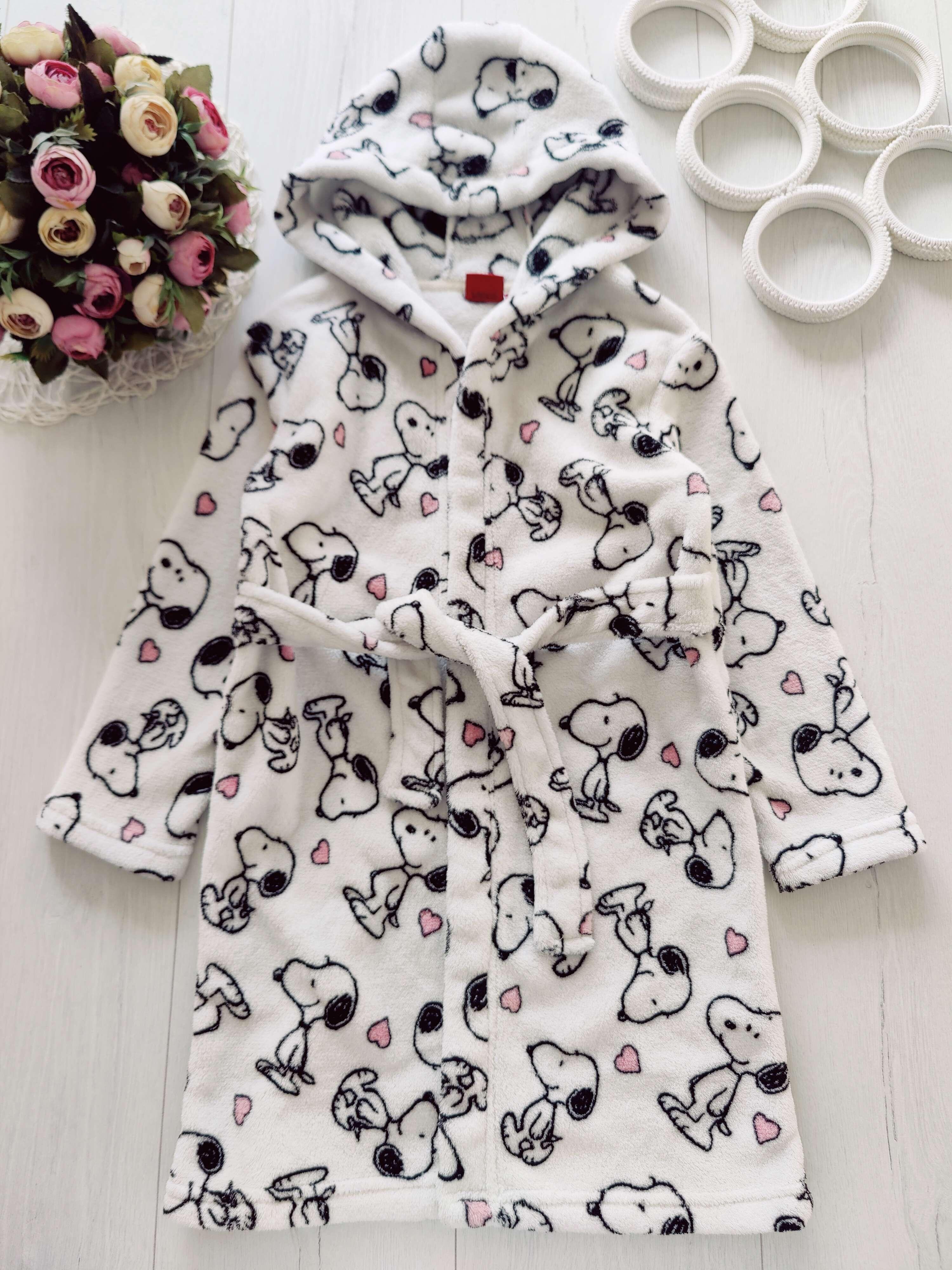 5,6 років, зріст 116 Теплий махровий халат із собаками в сердечках
