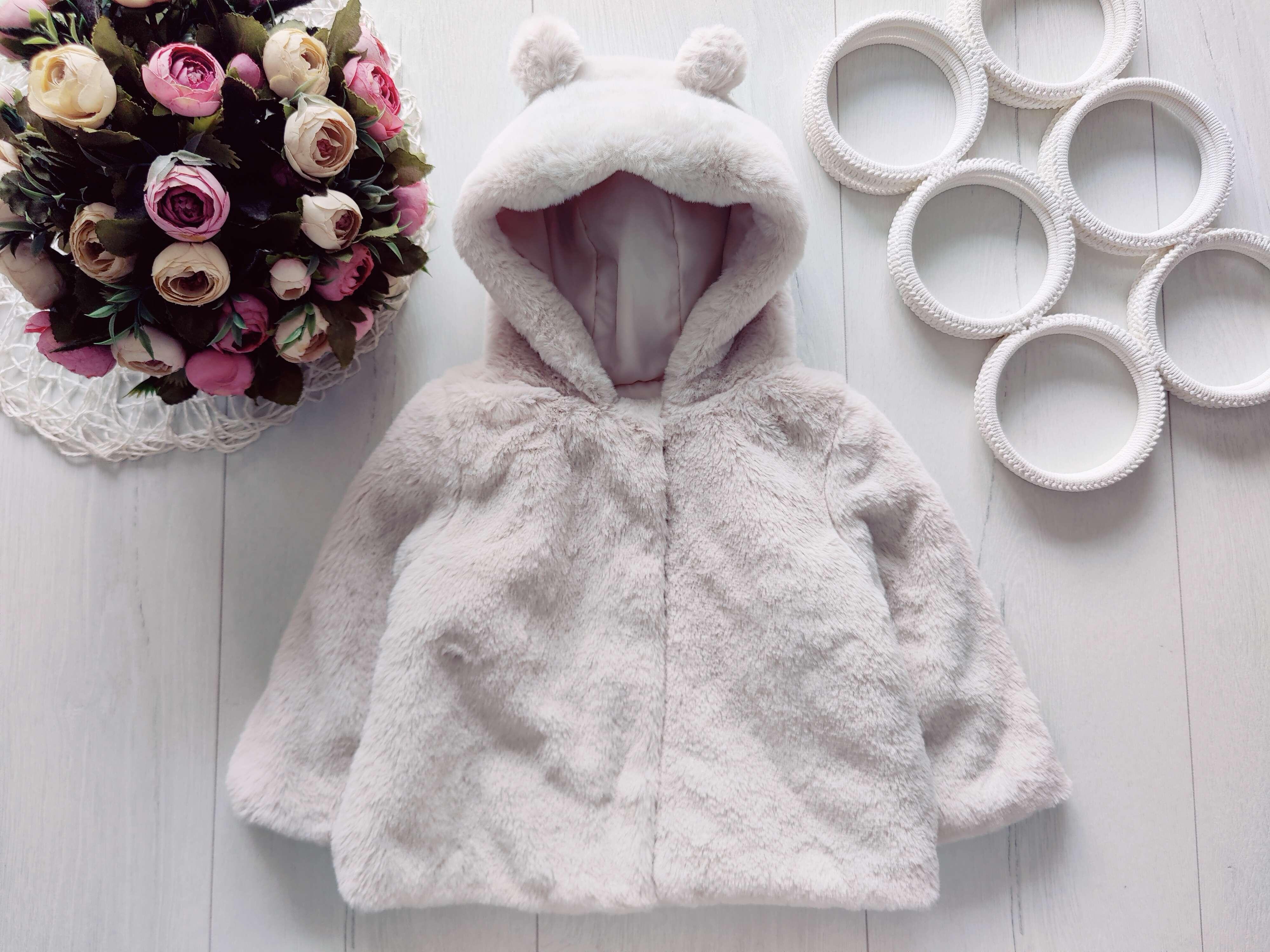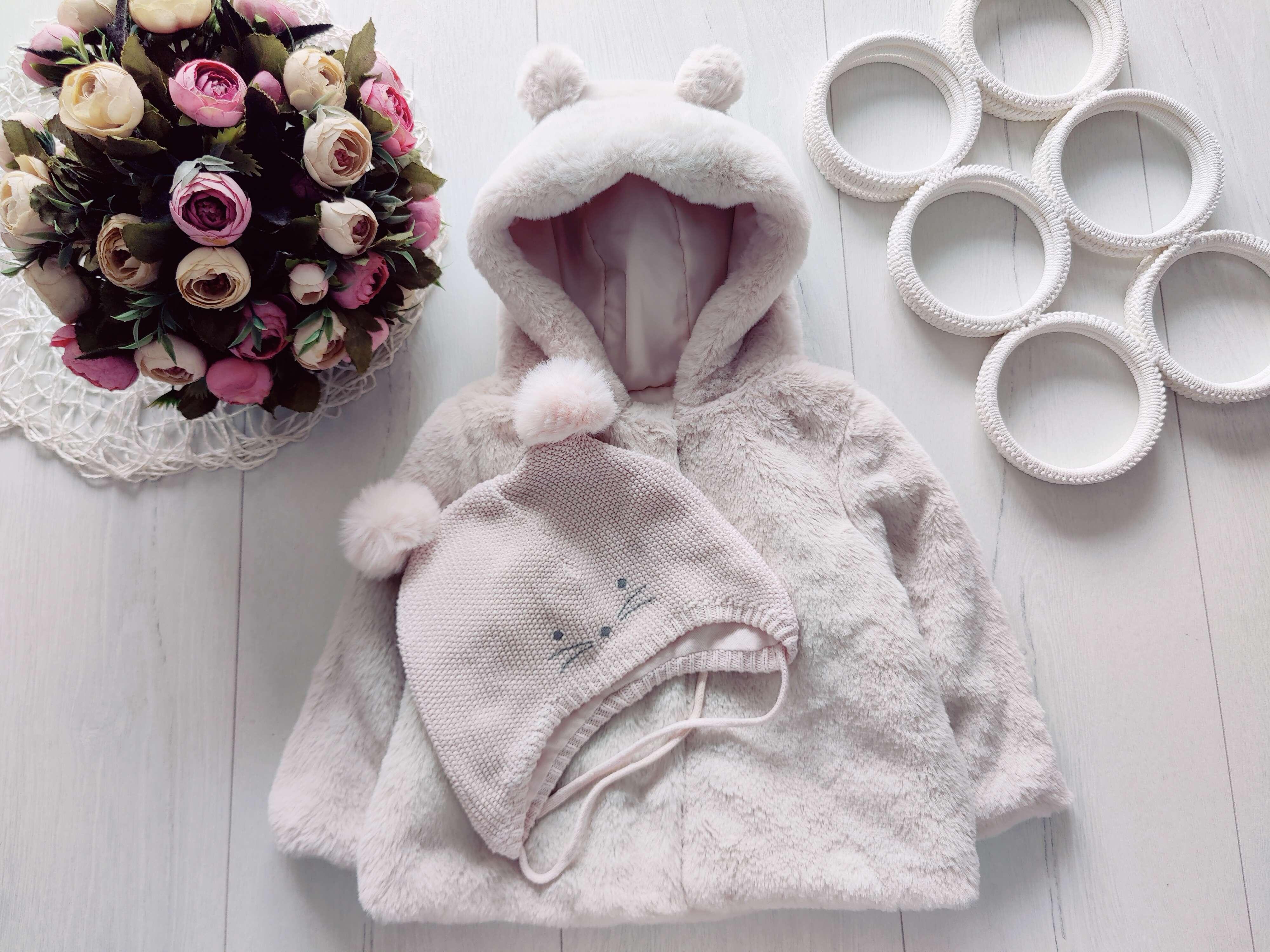6,9 міс, зріст 74 Пухнасте дитяче пальто, шапка в подарунок