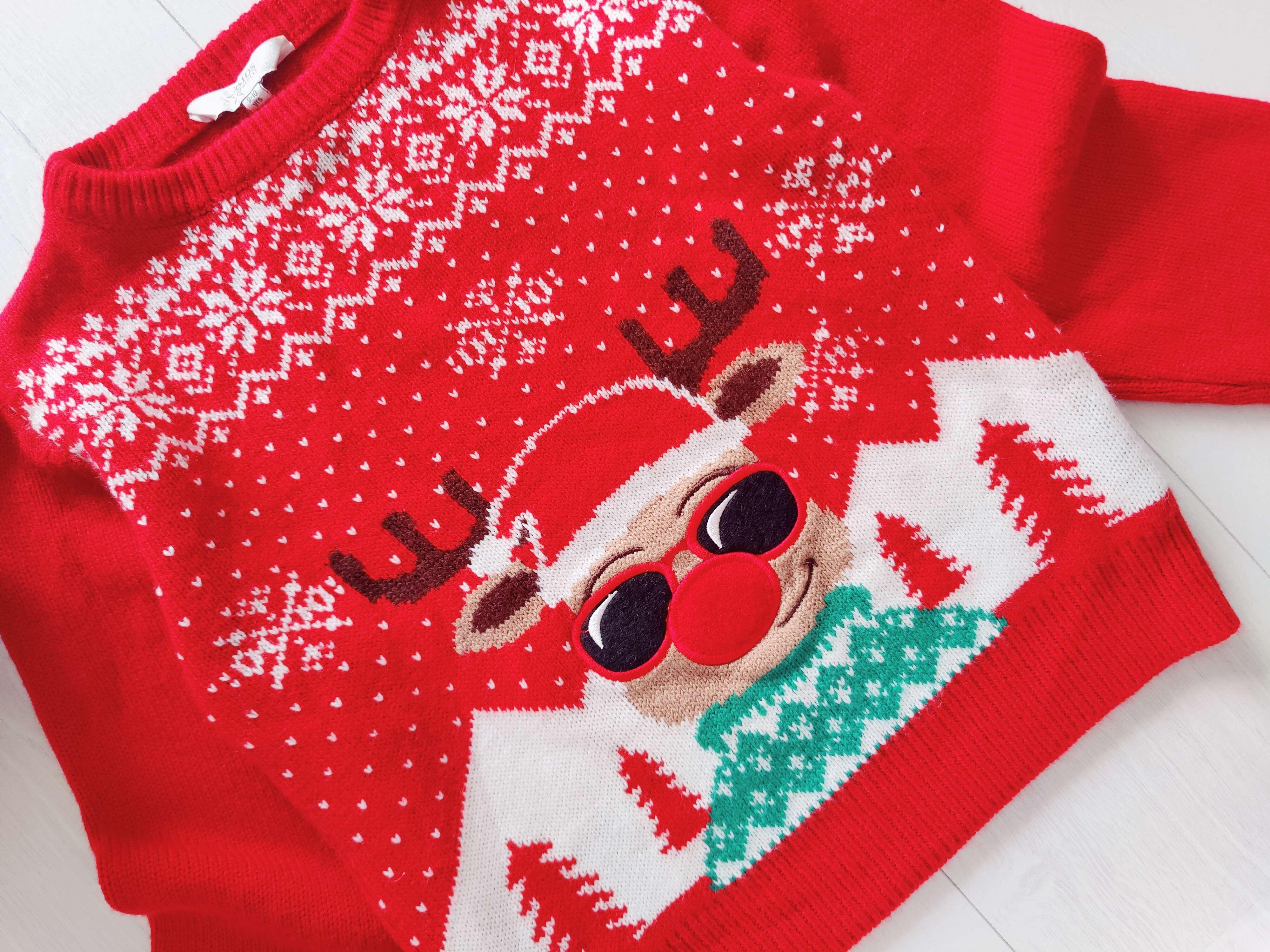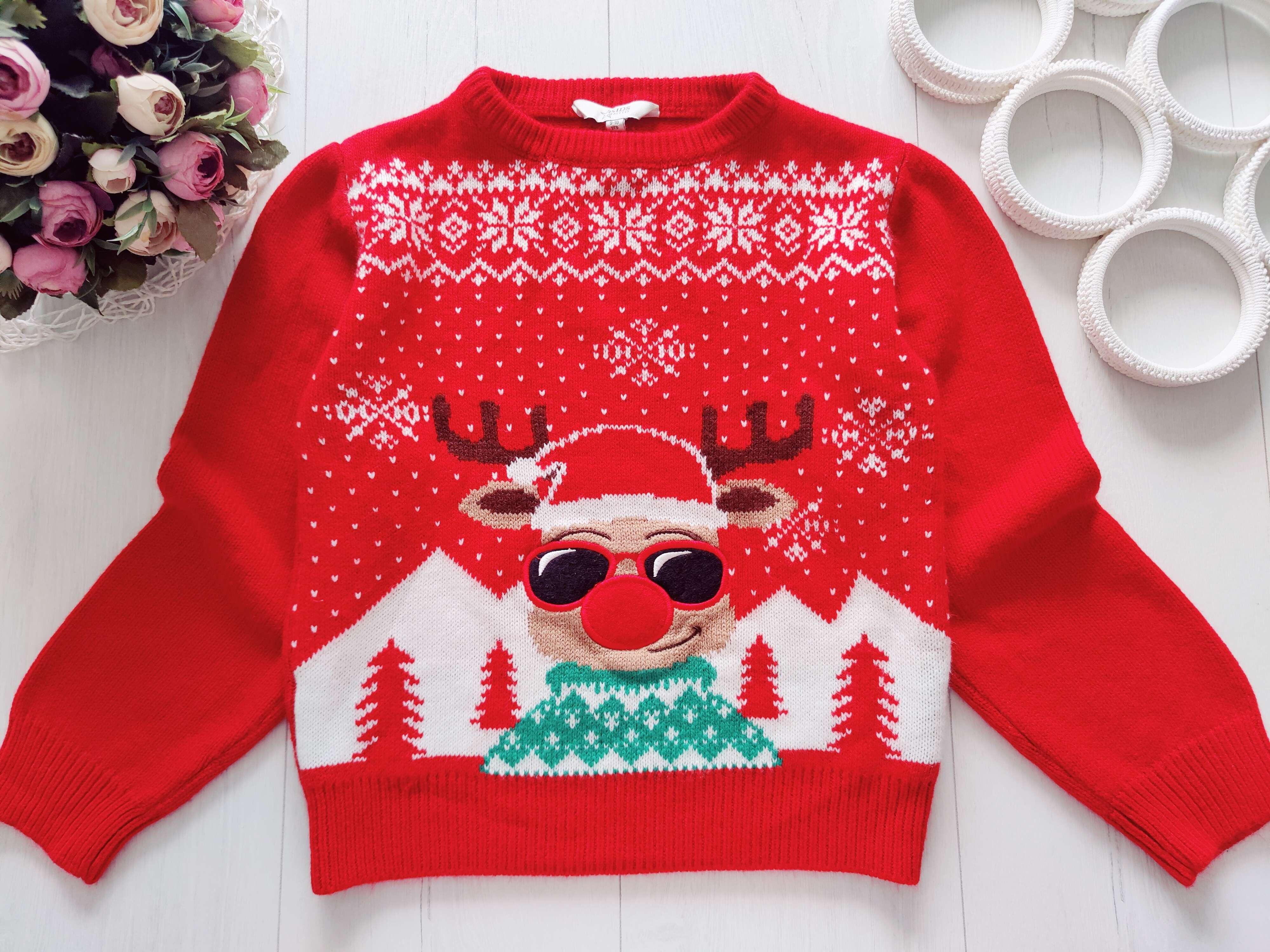 9,10 років, зріст 134,140 Червоний новорічний светр з оленем